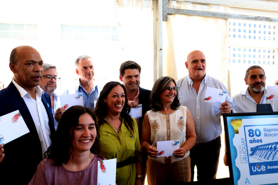 Con la presencia del presidente de la república, Yamandú Orsi, Correo Uruguayo presentó un sello personalizado conmemorativo por el octogésimo aniversario de de la Central Hidroeléctrica de Rincón del Bonete.
