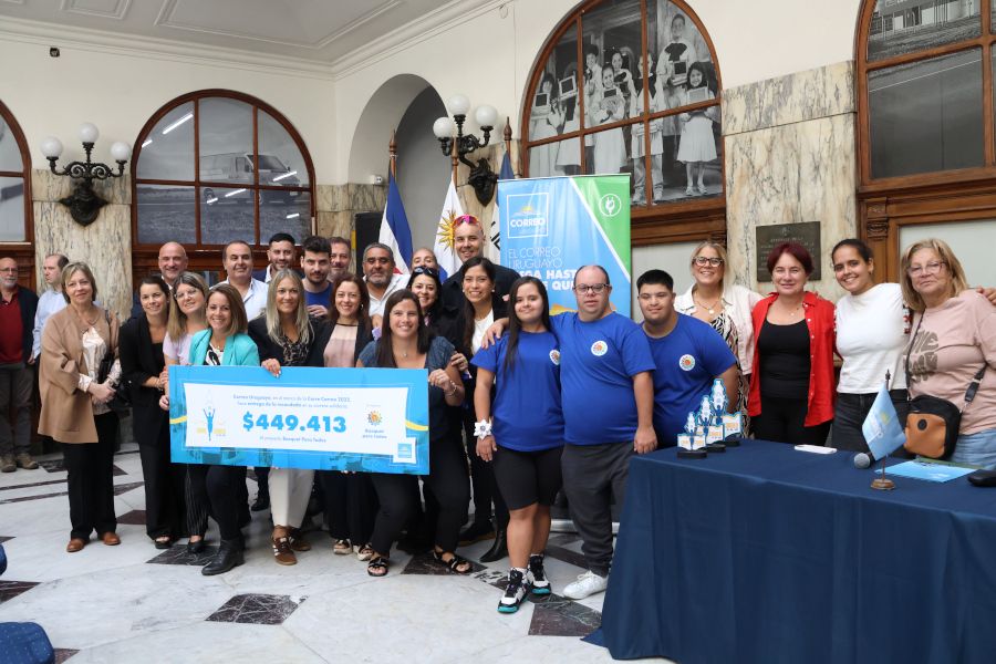 En un acto realizado en el hall del Palacio de Correos, autoridades de Correo Uruguayo hicieron entrega al proyecto Básquet para Todos de un cheque simbólico que representa la suma recaudada por la Corre Correo 2025.
